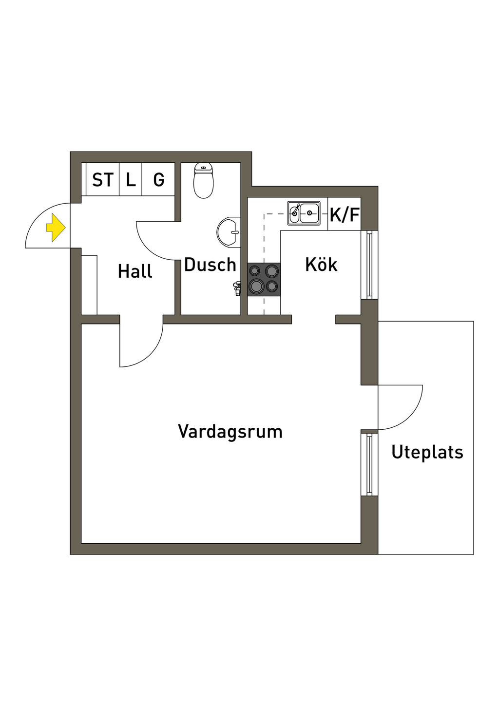 Fin etta på markplan med egen uteplats