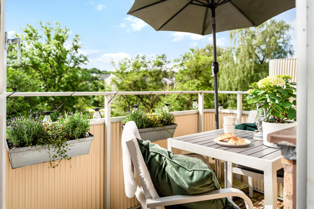 Genomgångstvåa med balkong och grönskande utsikt!