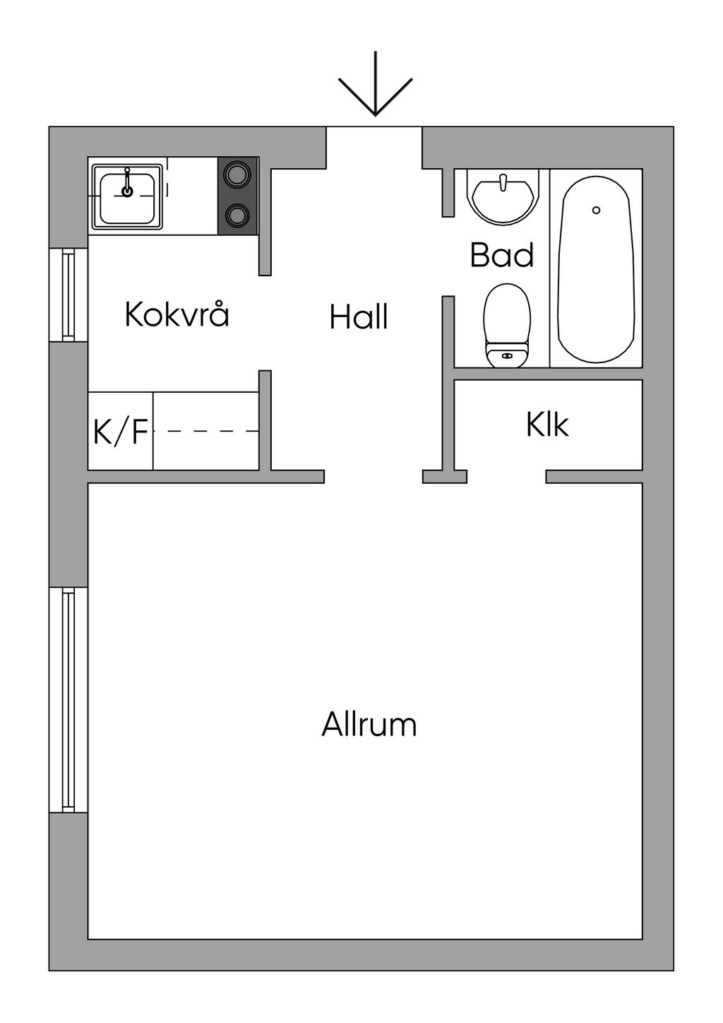 Välplanerad och ljus etta i fint skick!