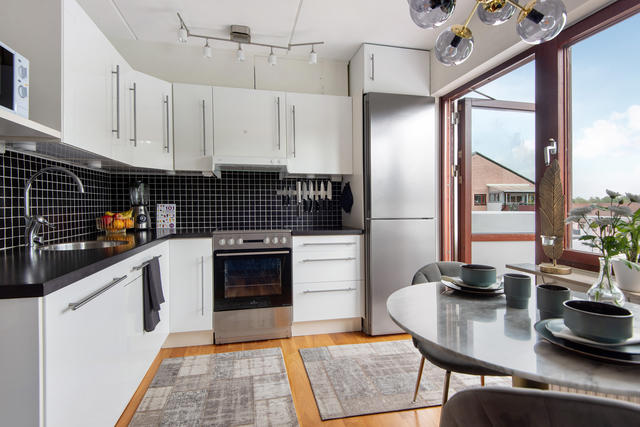 Stilren lägenhet högst upp i huset ut mot grönska och lugn