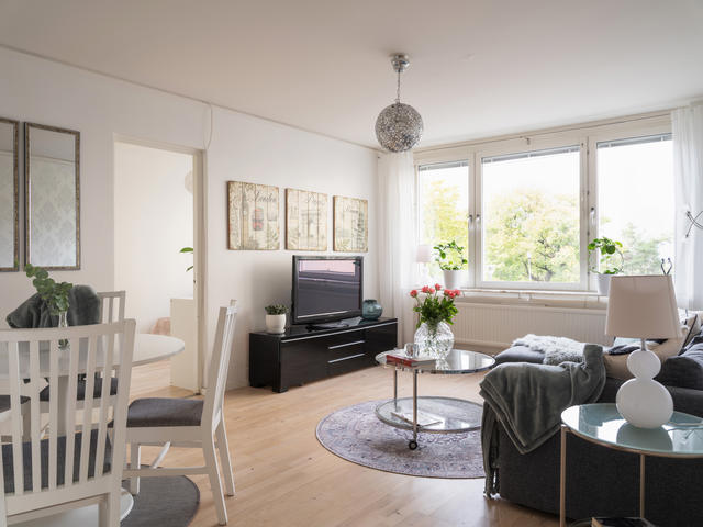 Stor 4:a med gavelläge, lummig utsikt och inglasad balkong nära Liljeholmen centrum!