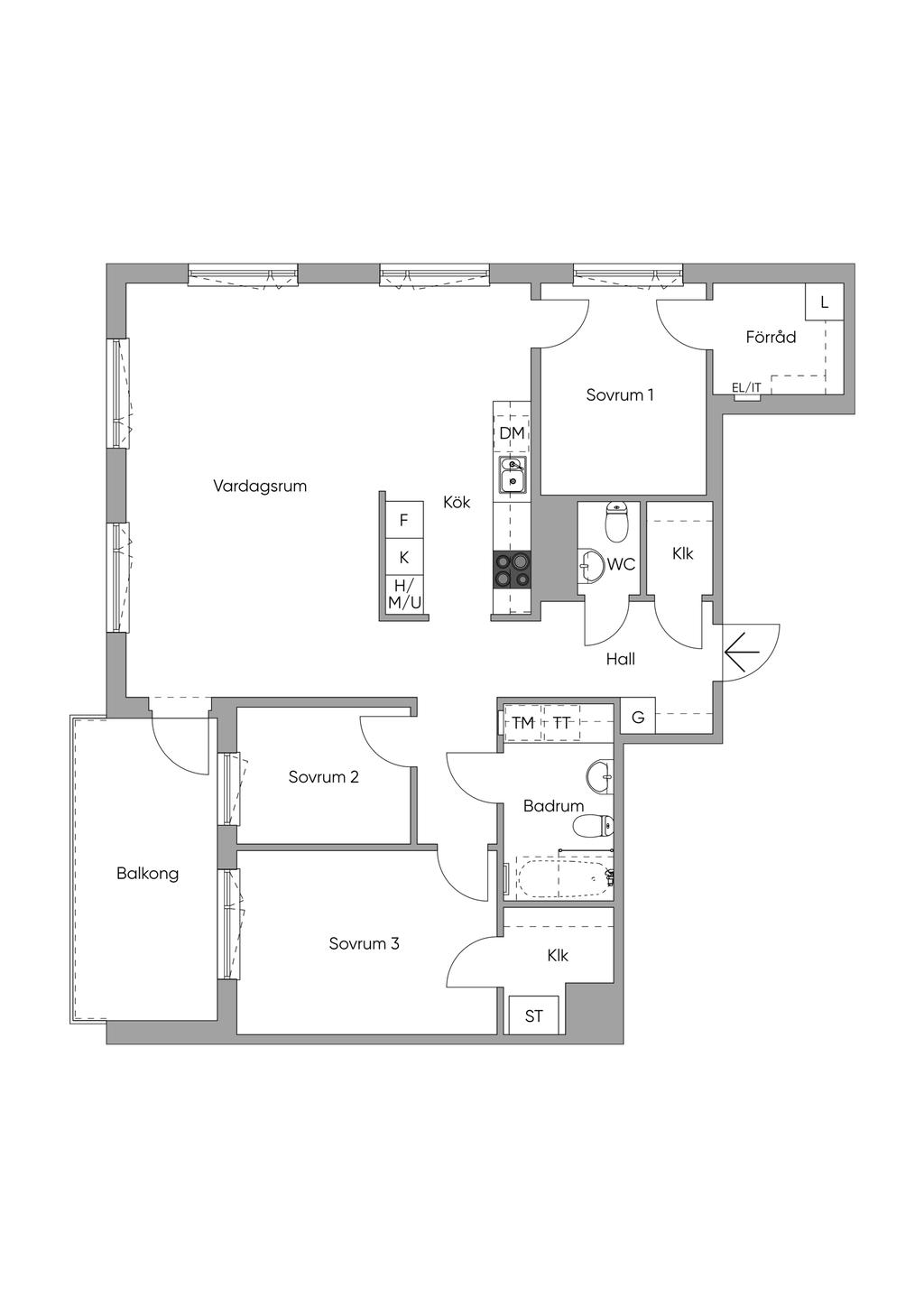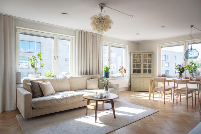 Gavellägenhet med fiskbensparkettgolv och stor inglasad balkong i sydväst!