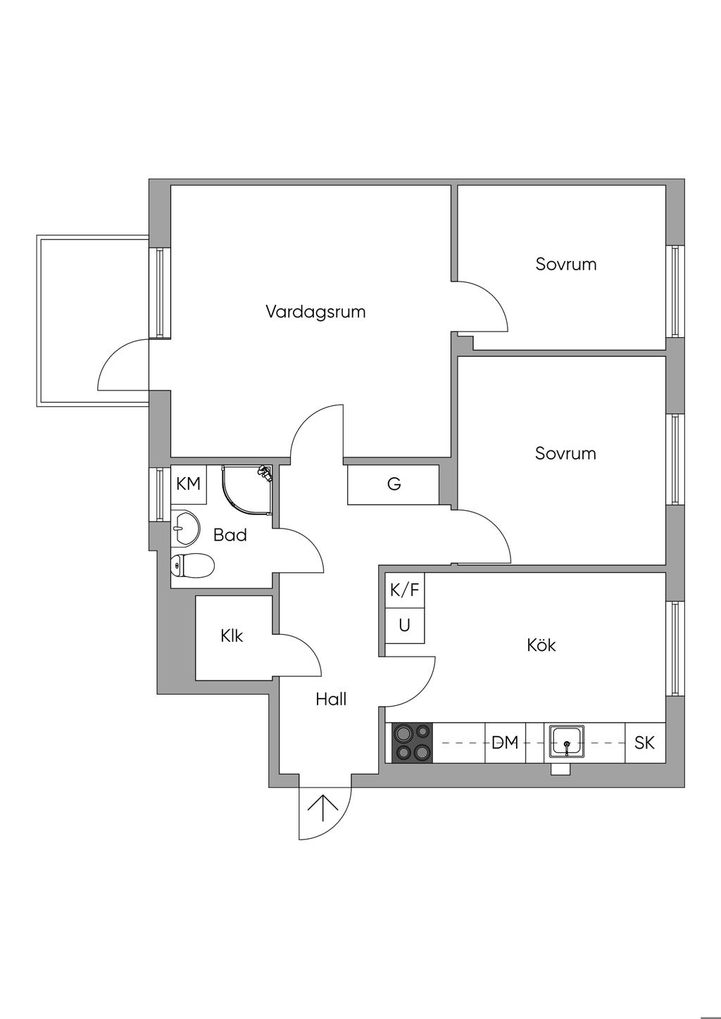 Renoverad 3:a med inglasad balkong och hiss i huset!