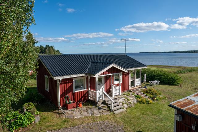 Fin stuga med utsikt över havet.