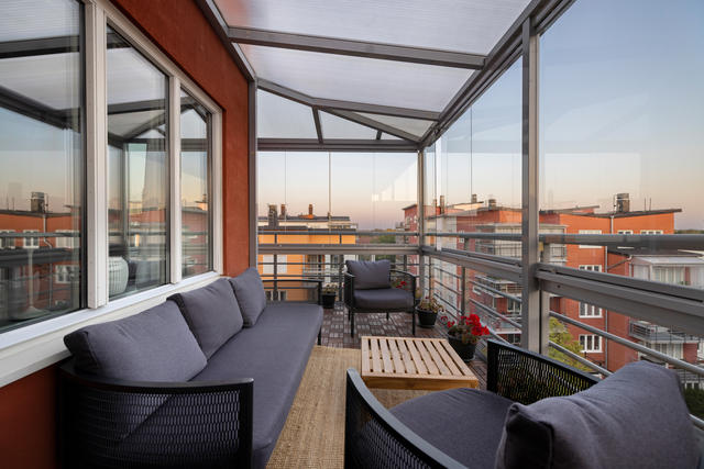 Unik fyrarummare med högt i tak och två balkonger
