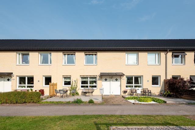 Bostadsrättsradhus med inglasad altan, soldäck och trädgård i Gamla Hjärsta!
