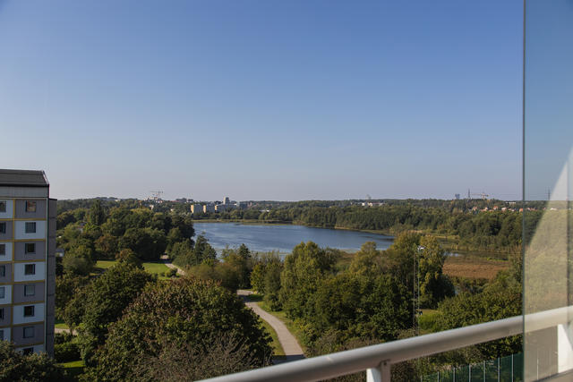 Högst upp på våning 10 med strålande sjöutsikt och inglasad balkong i sydväst!