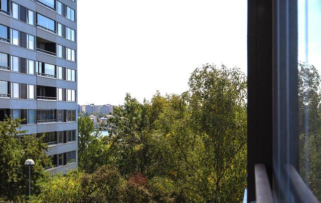 Inbjudande och väl tilltagen gavellägenhet med stor balkong med sjöglimt