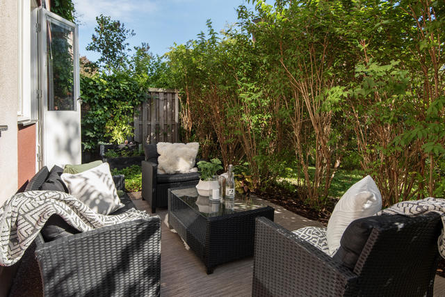 Radhuskänsla med stor uteplats i insynsskyddat läge