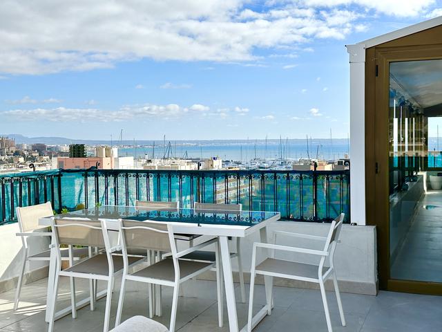 Vackert och ljust penthouse med magisk havsutsikt och terasser i flera väderstreck, i Palma.
