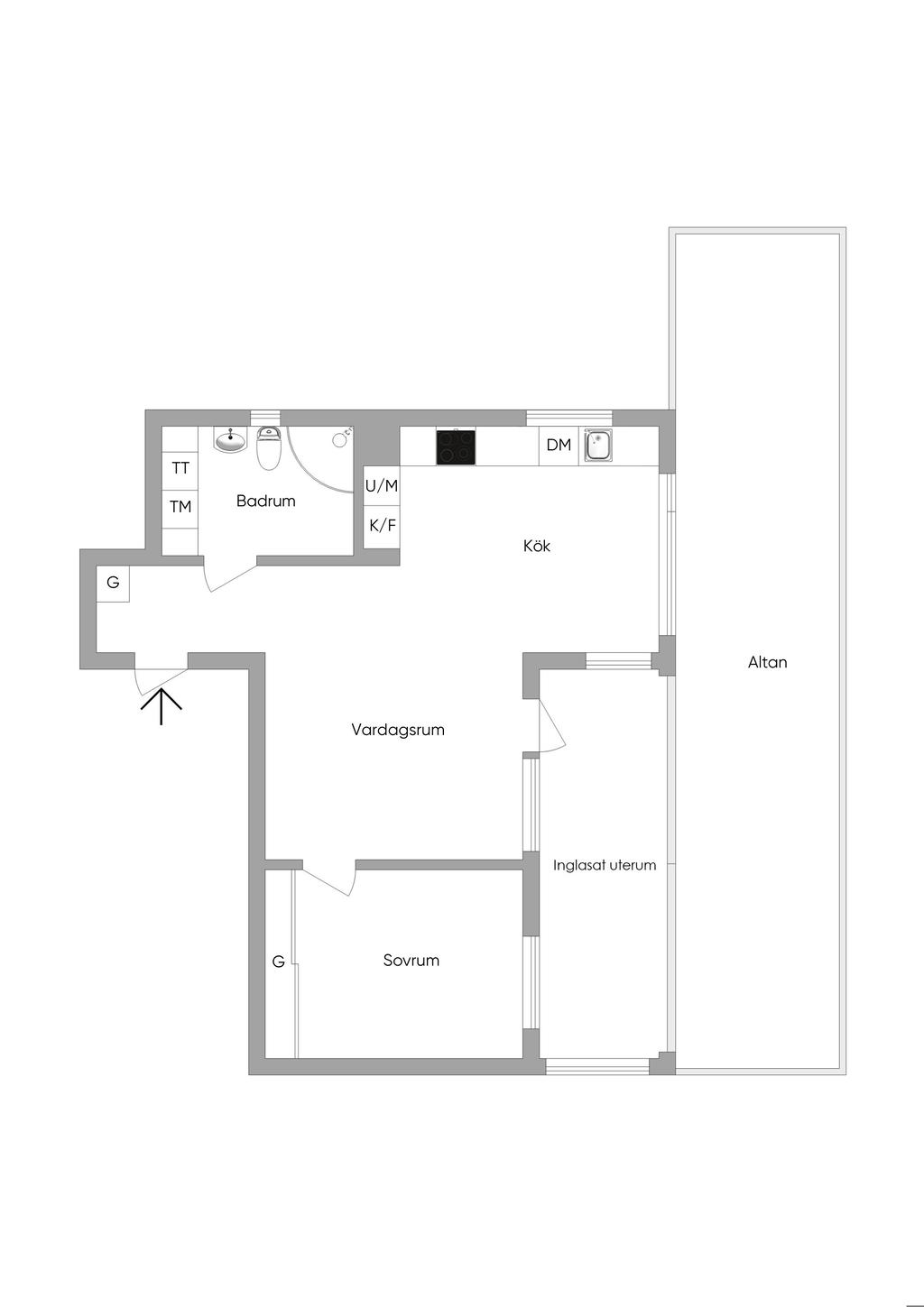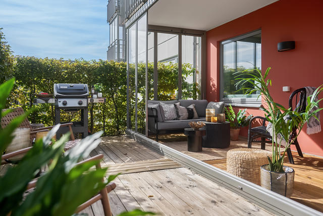 Välkommen till Larssons berg 13 och denna tvåa med unik uteplats och inglasat uterum!