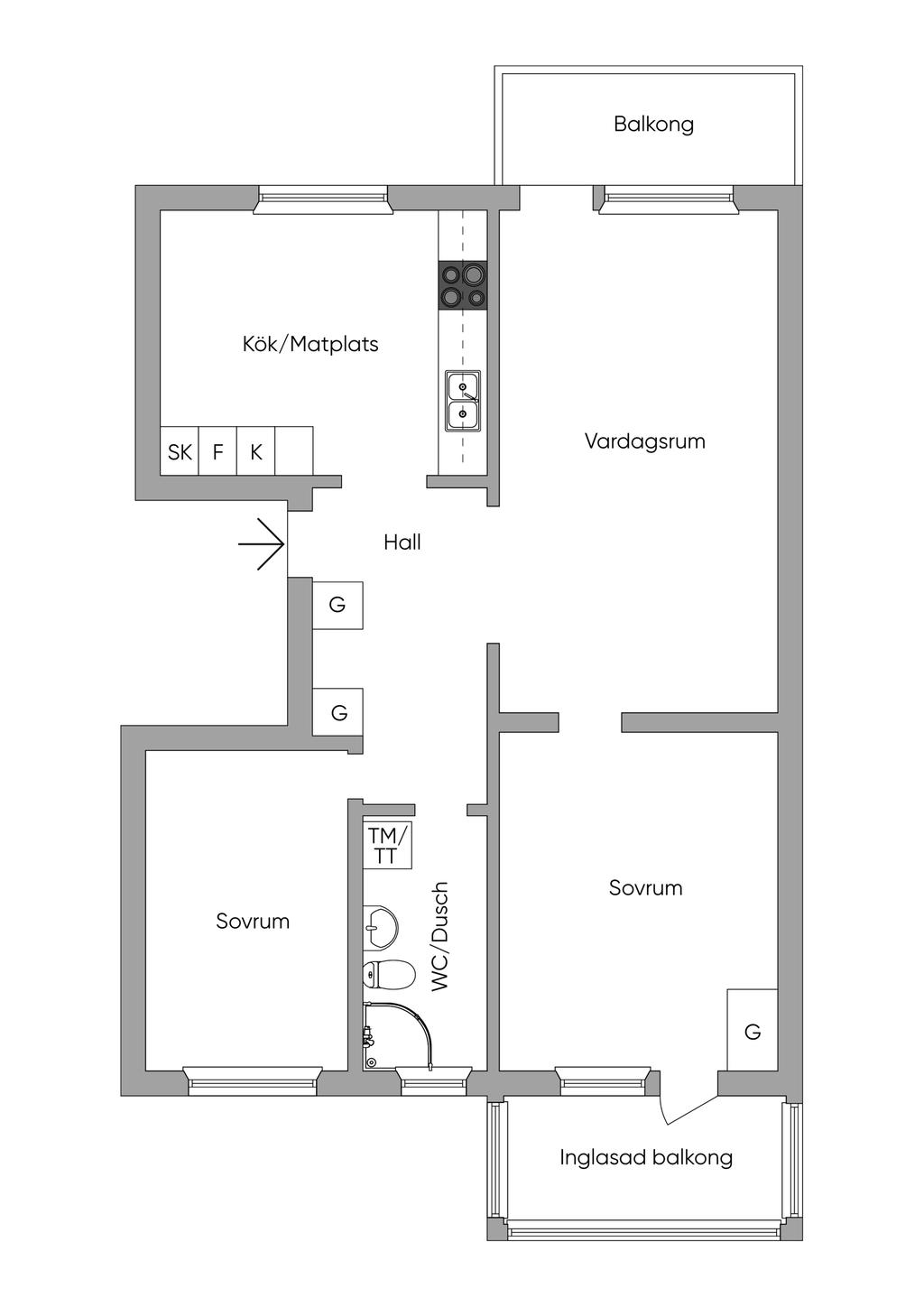 Lägenhet med två balkonger en inglasad och en utan inglasning närhet till det mesta man kan önska