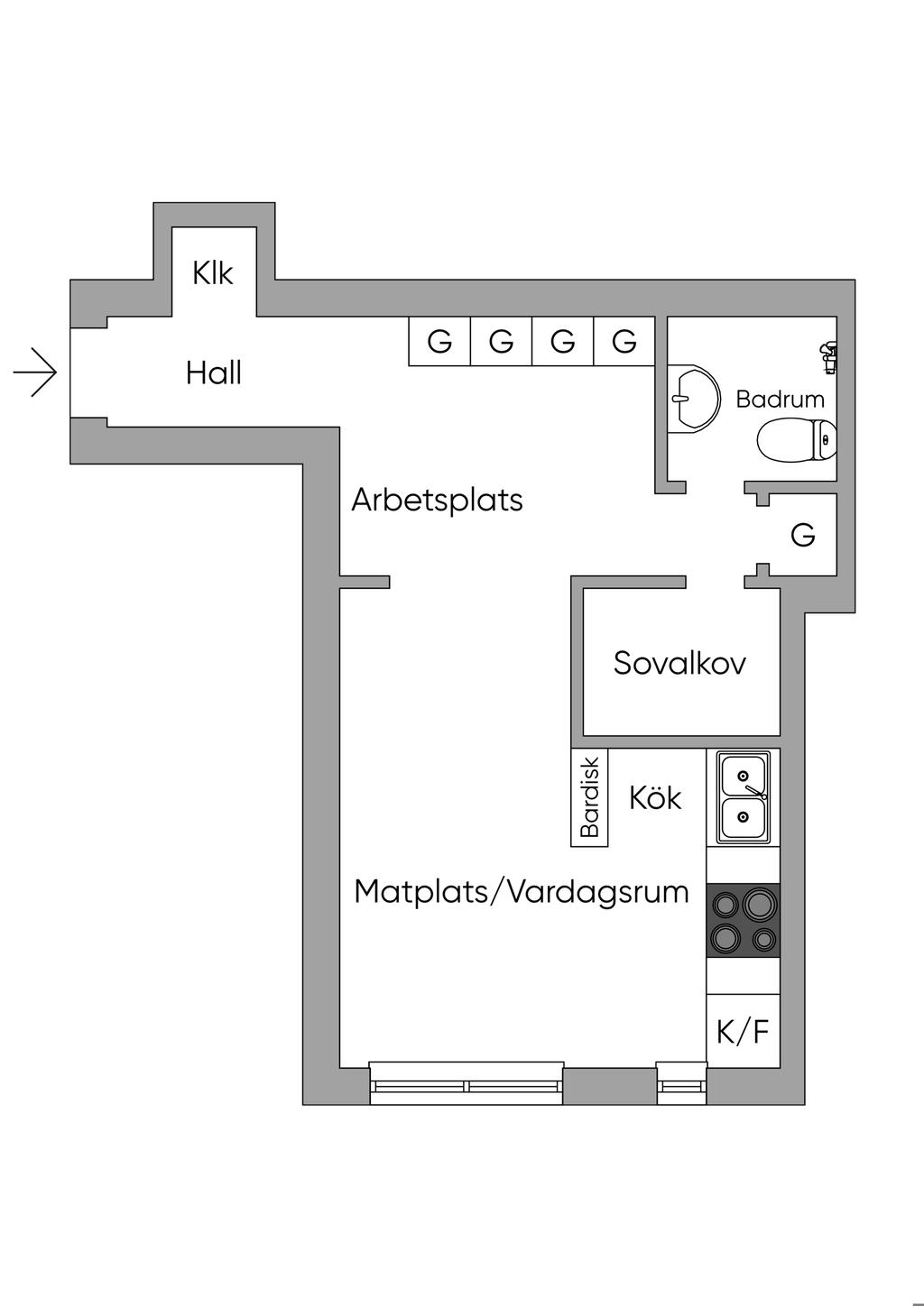 Välplanerad & ljus 1,5:a med öppen planlösning!