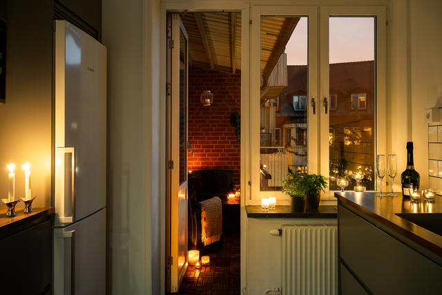 Stilren 30-tals våning med stor balkong och charmiga detaljer