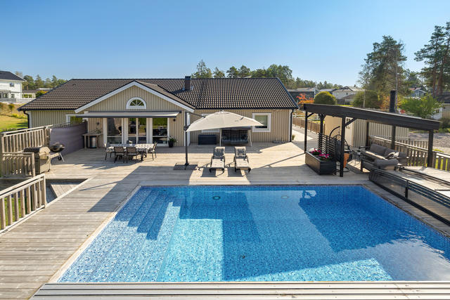 Exklusivt enplanshus i natursköna Täby Kyrkby – en oas för hela familjen!