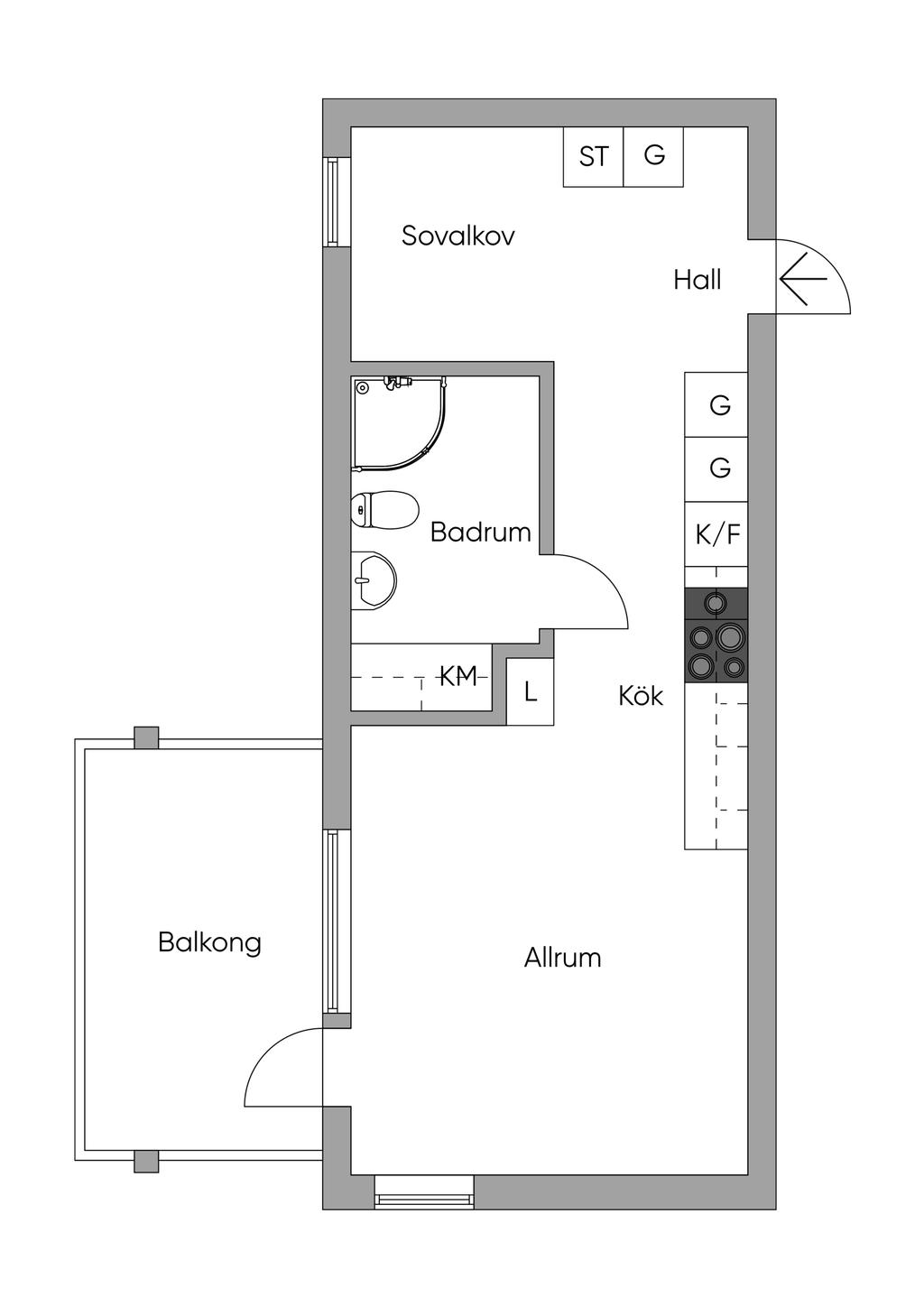 En ljus och modern etta på rymliga 36 m² med stor härlig balkong!