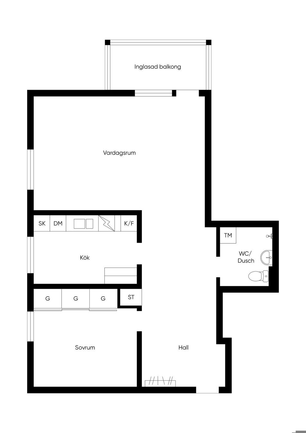 Mycket fin 2:a med stor inglasad balkong!