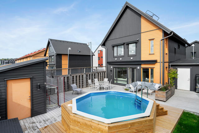 Fristående 2-planshus med inredningsbar vind, pool och carport i omåttligt omtyckta Kolla!