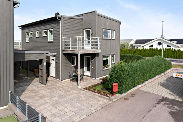 Modernt tvåplanshus från 2016 med fyra uteplatser samt låga driftkostnader!
