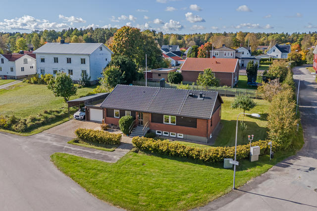 Rymligt och fint enplanshus med källare, vidbyggt garage och stor hörntomt i omtyckta Upphärad!