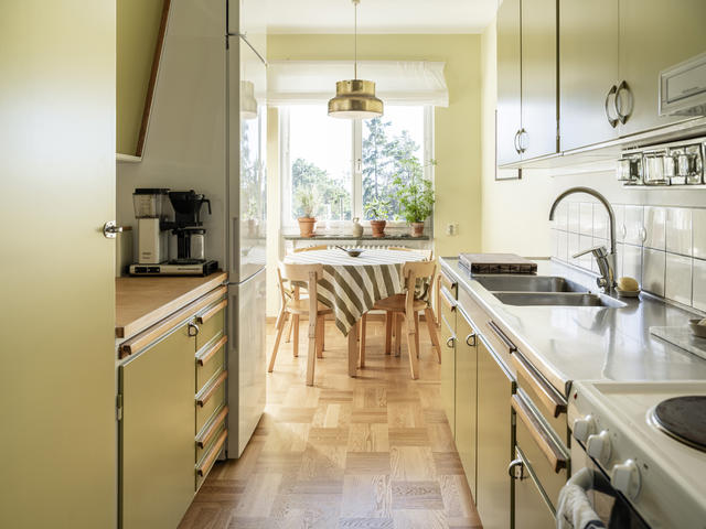 Charmig tvåa med originaldetaljer högst upp i huset och med solig balkong!