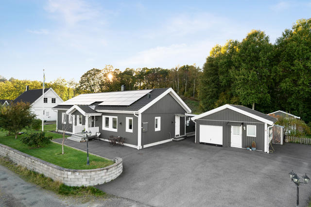 Enplansvilla från 2012 med pool, uterum, braskamin, garage, gäststuga och solceller!
