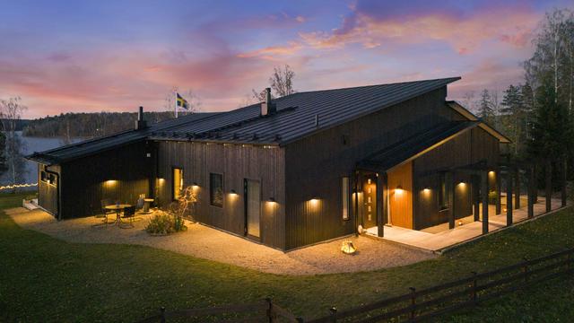 Nybyggt enplanshus i bästa västerläge med egen brygga, verkstad och attefallare!