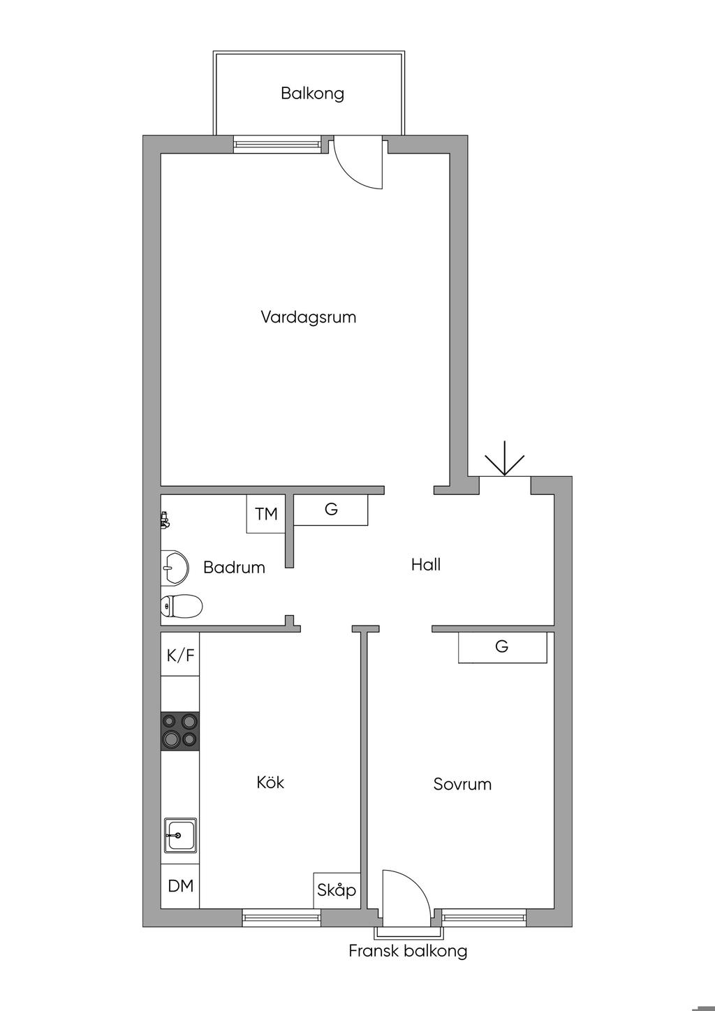 Mycket ljus och välplanerad tvåa med solig balkong!