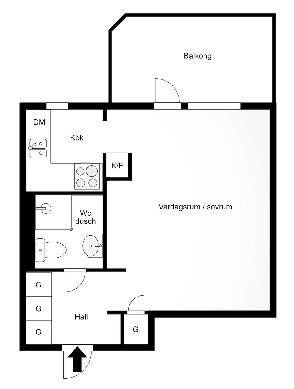 Allt du behöver i ett rum och kokvrå med skön balkng