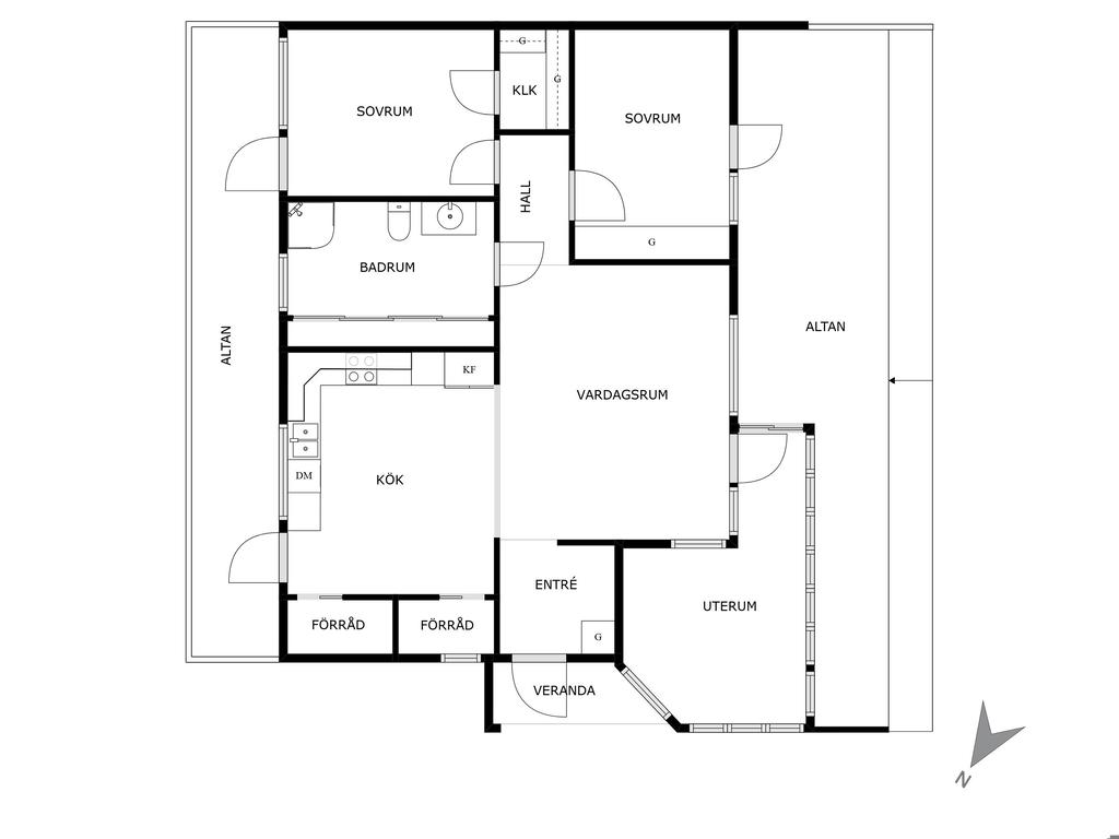 Modern markplanstrea med två uteplatser och uterum i populära Frösakull!