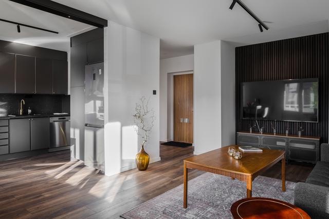 Modernt inredd lägenheten på första våning med inglasad balkong