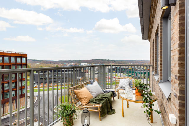 Välplanerad 2:a om 59 kvm högt upp i huset med stor sydostbalkong och utsiktsläge