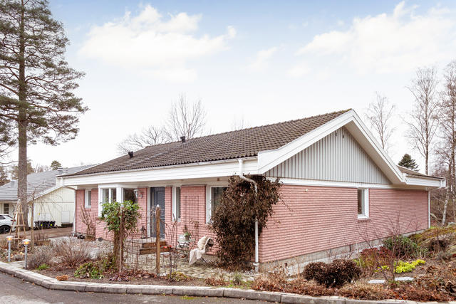 Högt beläget enplanshus med bra planlösning och skyddat läge