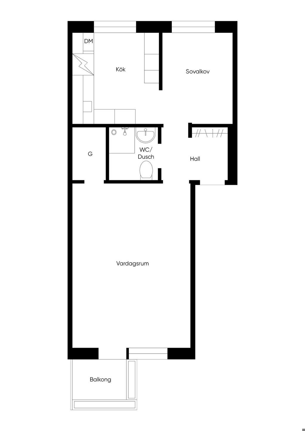 Smart planerad enrummare med balkong i sydväst! Bottenplan!