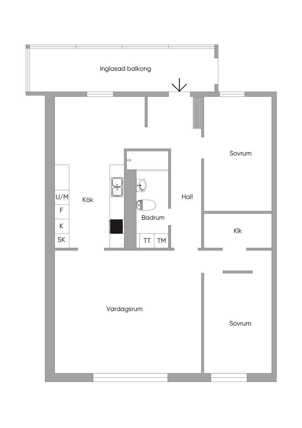 Stilren trea, renoverat kök och badrum samt låg avgift i ekonomiskt stabil Brf