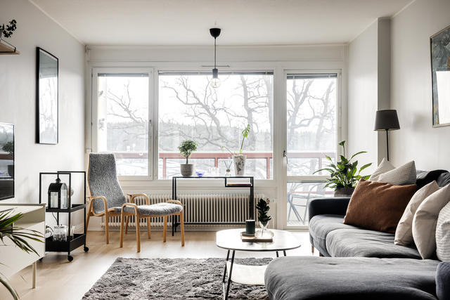 Gaveltrea i ogenerat läge med sjöglimt, inglasad balkong i söder och stabil BRF!