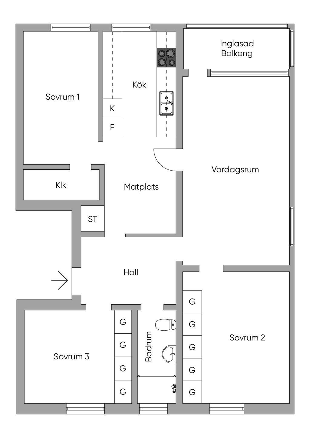 Perfekt gavel fyra med inglasad balkong i söderläge!