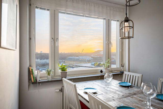 Välkommen till denna enastående gavel 3:a högt upp i huset med inglasad balkong!