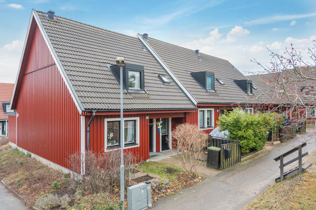 Familjevänligt radhus med hörnläge på bilfri gata på naturnära Arnö!