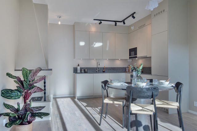 Elegant trea med generöst ljusinsläpp, dekorativ eldstad och balkong i fritt söderläge. Jur.pers OK.