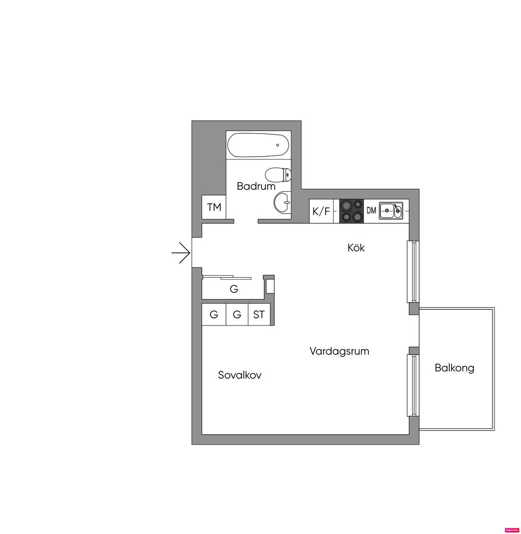 Välplanerad och ljus etta med öppen planlösning och balkong!