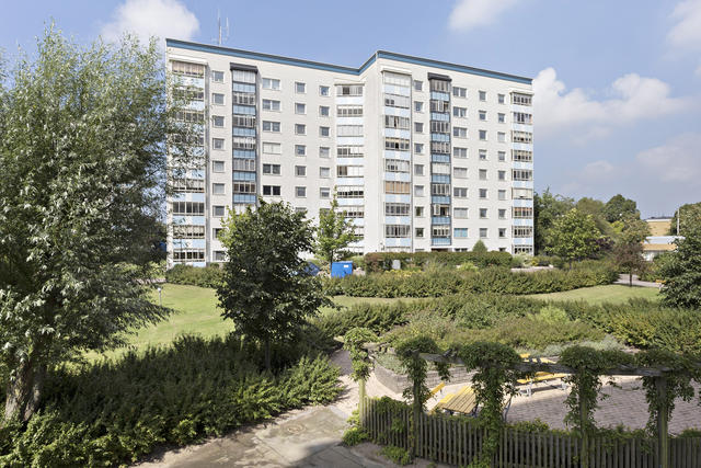 Trevlig och rymlig trea med inglasad balkong och grönskande innergård!
