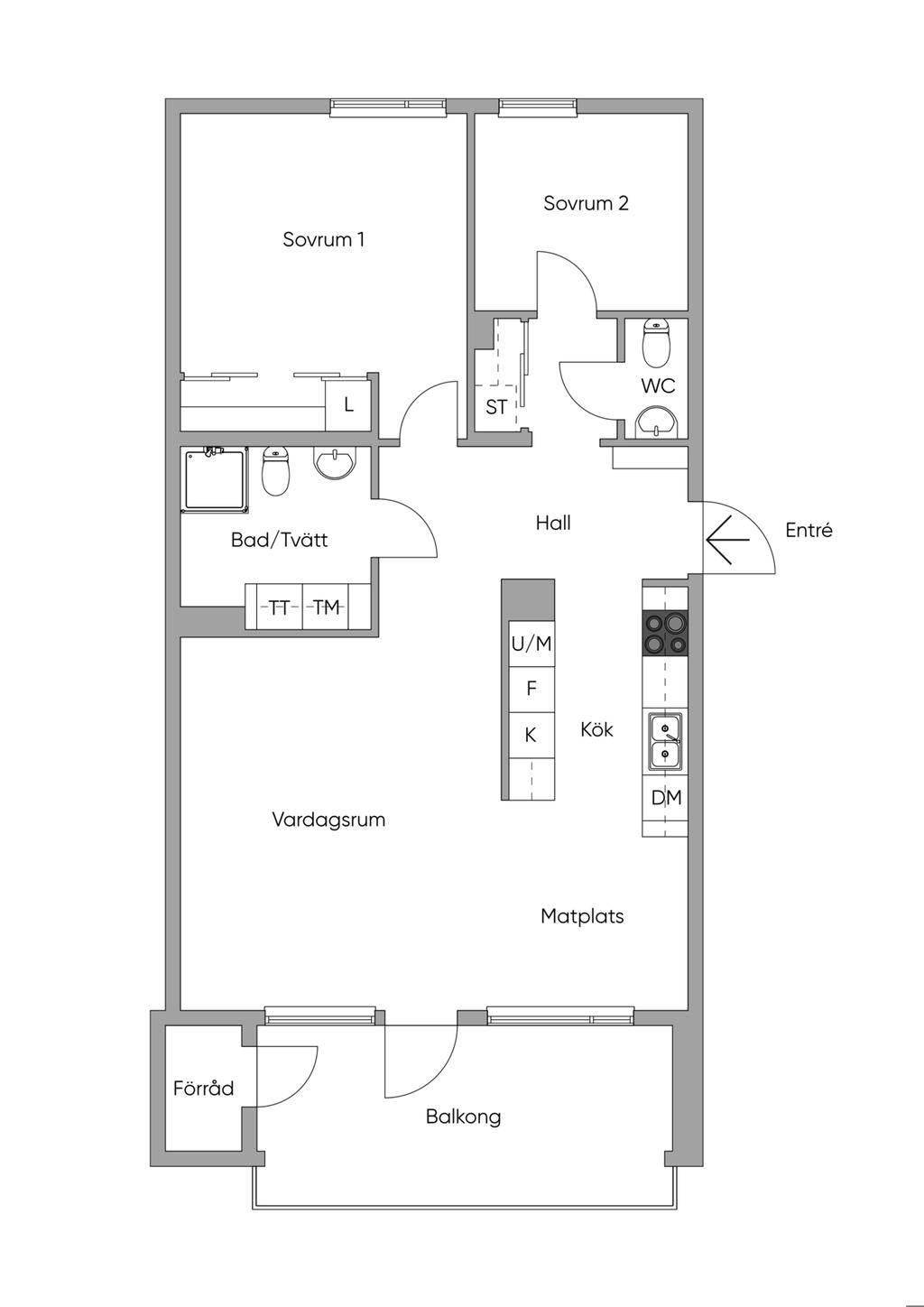 Genomgående 3-rums lägenhet i söderläge med balkong och utsikt mot Lomma hamn