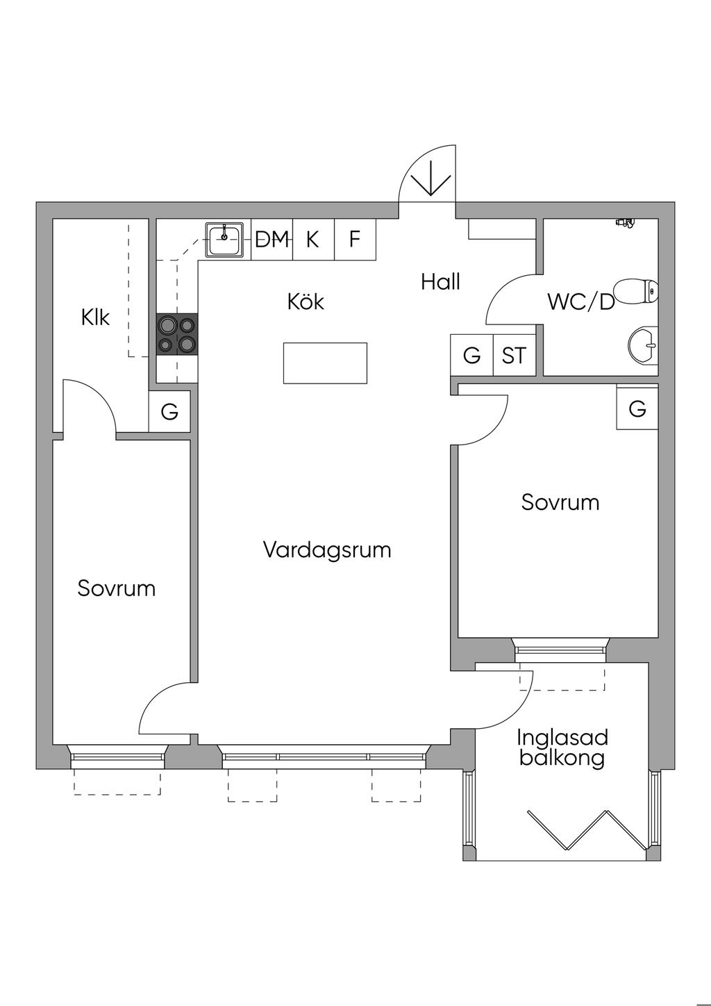 Charmig och Välplanerad 3:a med Öppen Planlösning och Stor Inglasad Balkong