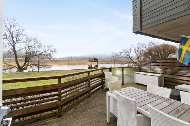 Rymlig lägenhet med sjöutsikt och två uteplatser