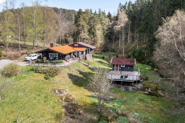 Historiskt timmerhus med gäststuga, naturtomt och eget vattenfall – Södra Röd 311