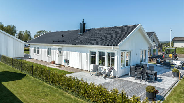 Påkostad enplansvilla med låga driftskostnader och direkt närhet till golfbana samt 30 min till Gbg.