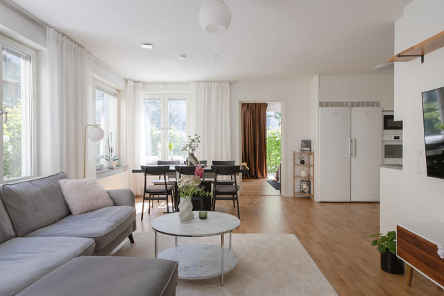 Radhuskänsla med två stora uteplatser mot lugn gård!