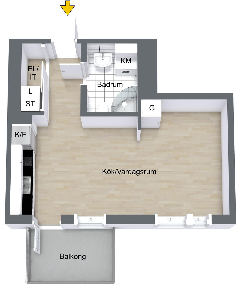 Yteffektiv etta med balkong och fantastiskt pendlarläge!