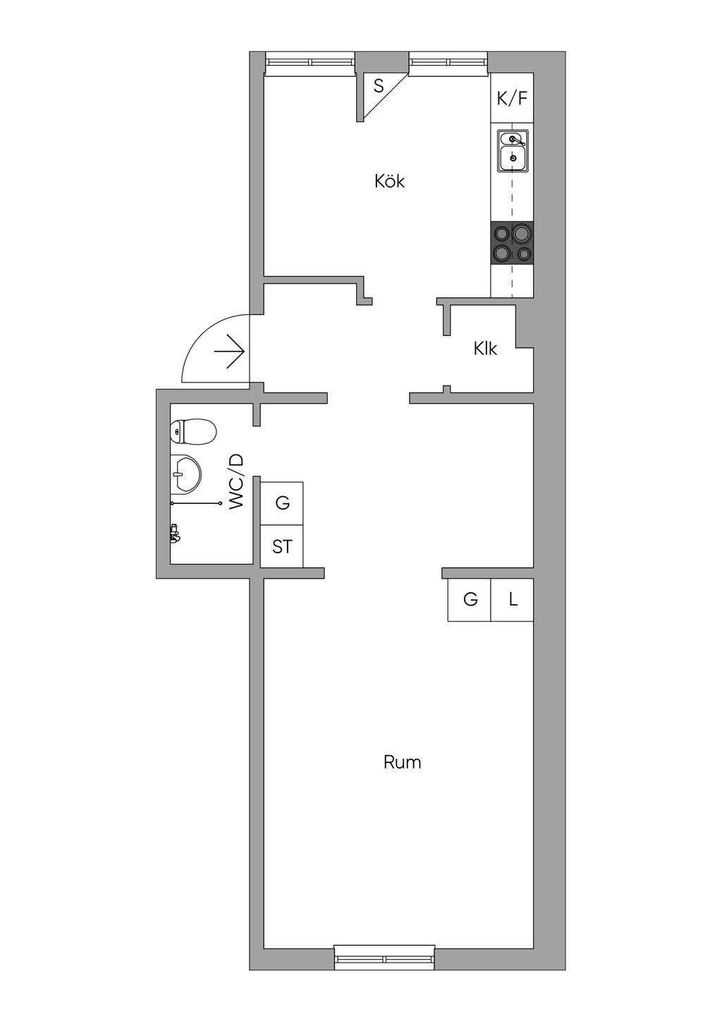 Charmig och rymlig 1,5:a med tidstypiska detaljer och mysig innergård!